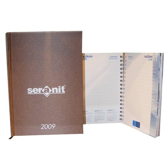 The A4 size notebook with a hard cover. It has built-in calendar. It is suitable for diary.