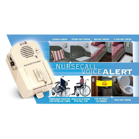 The voice alert offers a choice of the high volume, low volume or silence mode with flashing light. It allows you to record your own alert messages or instructions with a voice that is familiar to the patient. This piece also enables a caregiver to receive a remote alarm signal if it is connected to an existing nurse call system via a 6.3mm mono jack.