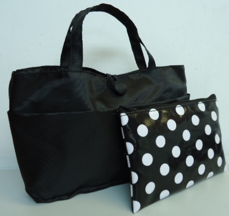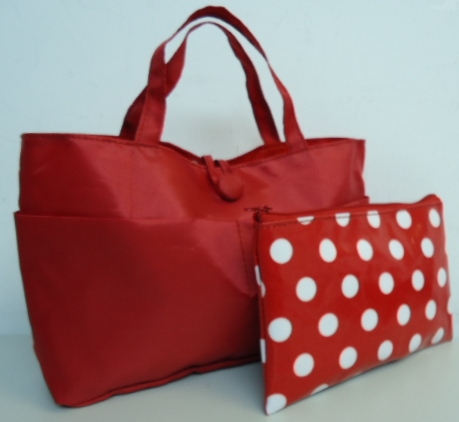 The 420D nylon bag front have two open pocket, back have one zipper pocket.