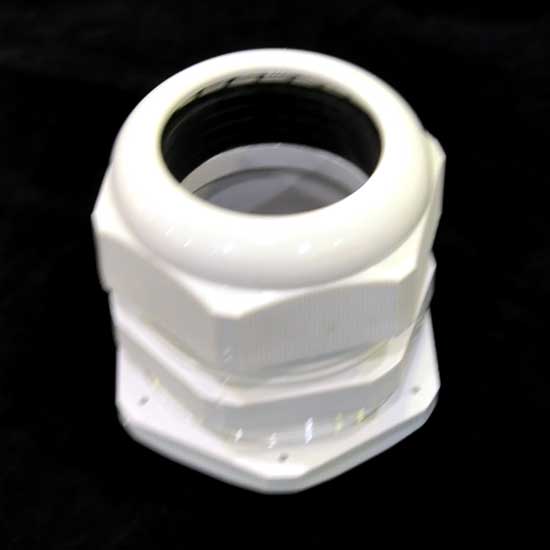 This nylon cable gland is durably constructed. It features a rubber band in the interior for fixing the attached cable. The gland is designed to offer excellent reliability in attaching and securing the end of a cable to the equipment.
