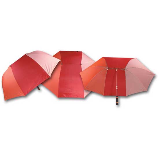 This nylon umbrella comes in a three-color design. It features an aluminum shaft and metal ribs, together offering reliable use. The EVA straight handle has an ergonomic shape for comfortable carrying.