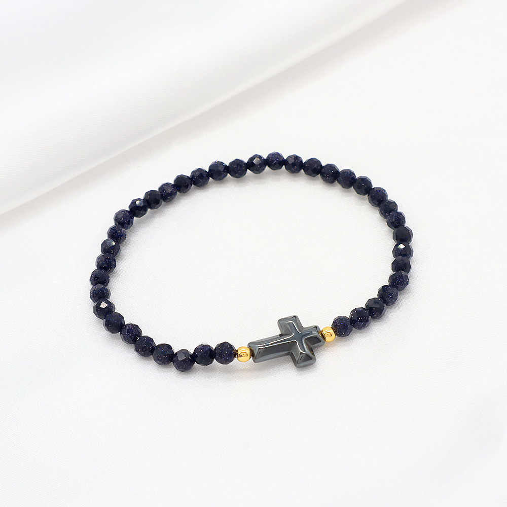 OEM Handmade Gold Plated 3mm Brass Beads Charms Natural Stone Beaded Elastic Bracelet