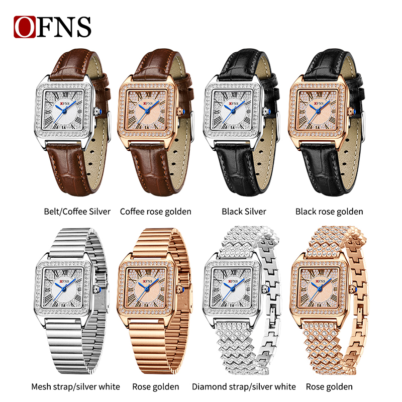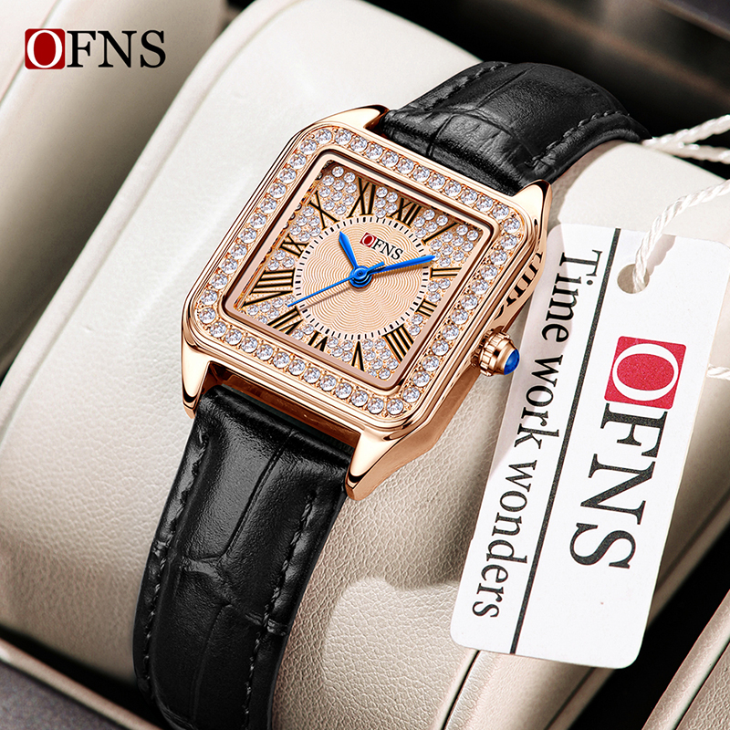 OFNS brand fashionable light luxury watch square diamond set Roman scale women's business quartz watch