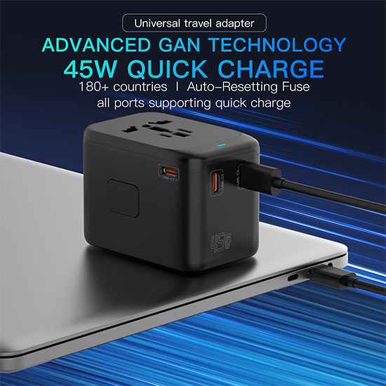 1. * * Power output * *: Clearly labeled as 45W, it means it can provide relatively high charging power and is suitable for various electronic devices such as smartphones, tablets, laptops, etc.