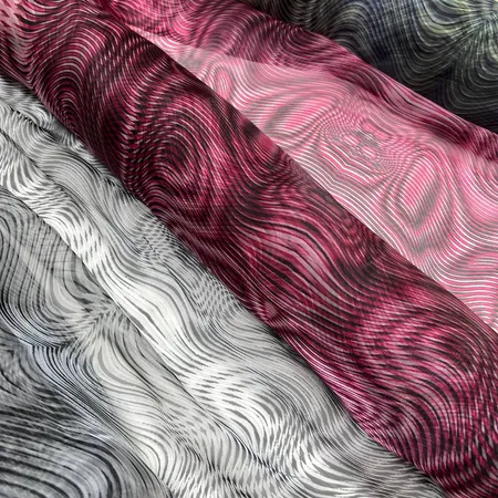 High-quality decorative fabric with an abstract print. The material is soft and pleasant to the touch. Transparent, lightweight, and delicate.
