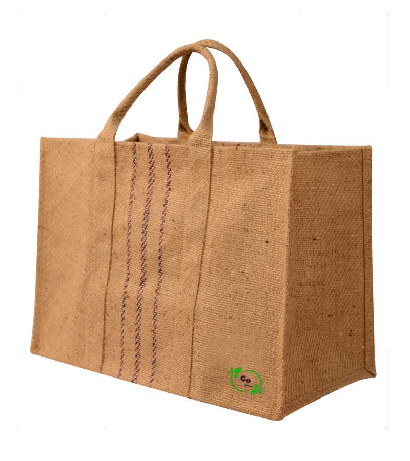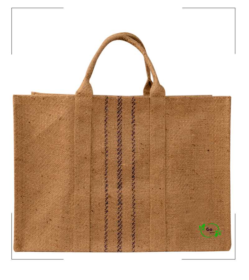 Three Striped laminated Hessian Jute Bag with self padded handles