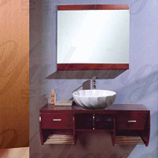 This cabinet includes a mirror and a cabinet with a basin. The design of this cabinet is classy, with red oak as material and a finely-crafted porcelain basin. This cabinet will match elegant interior design.