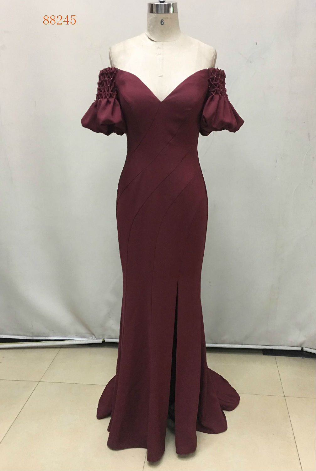 Off-Shoulder Puff Sleeve Beading Evening Dress