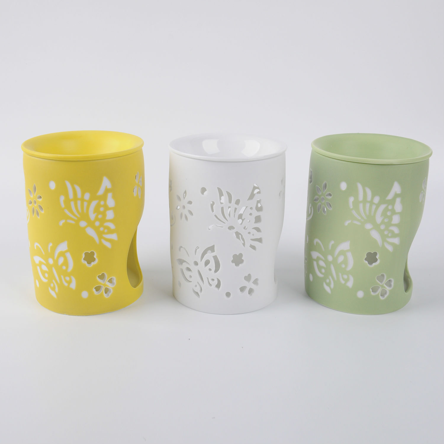Handcrafted with cut-out floral design, hollowed-out pattern allows light to go through, made of white glazed ceramic