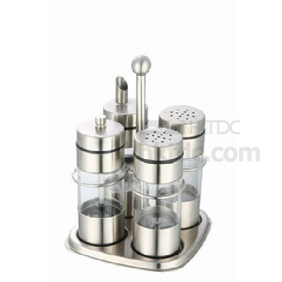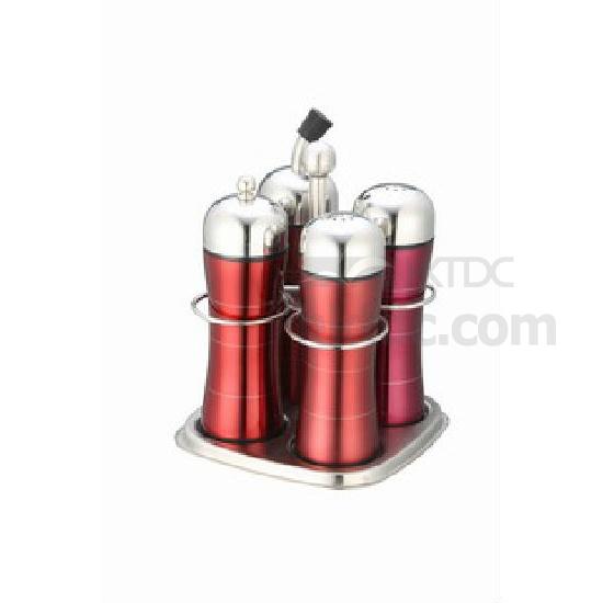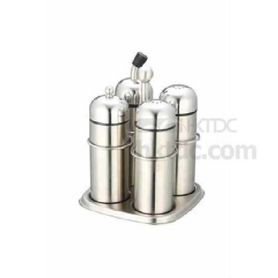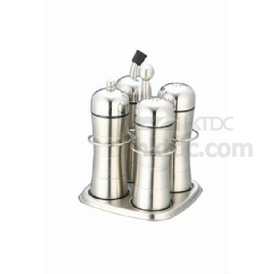 Get this modern cruet set for creating a convenient eating experience in your dining room. This practical set is designed for holding up to four containers for condiments, including salt and pepper shakers as well as vinegar and olive oil bottles. Its high quality 18/8 stainless steel material prevents rusts which in turn affects your delicacies. Square base and slim bottle design make it a modern matching item at home.