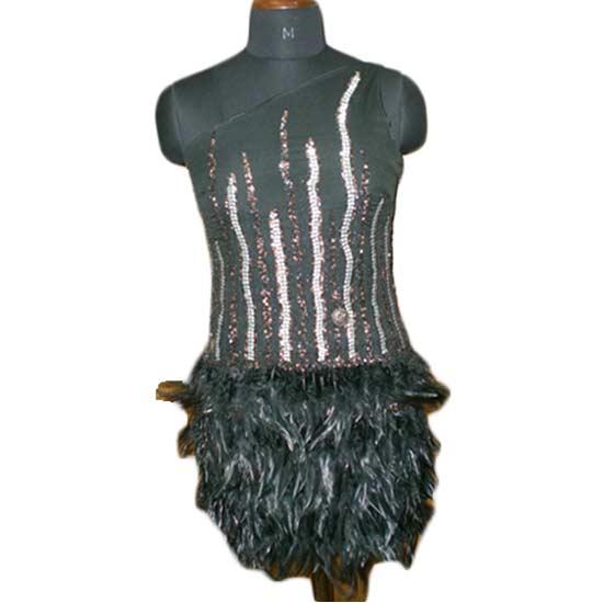 This fancy party dress boasts a one-shoulder design to accent your feminine silhouette. The feather skirt area showcases exotic flair. Stand out from the crowd with this stunning feather dress.