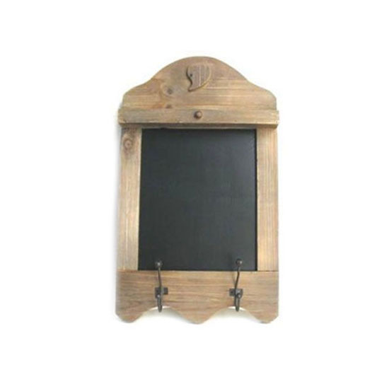 This is a lovely blackboard that is great for marking plans, schedules, random thoughts, etc. The wooden-like frame contributes to a rustic and vintage flair. The two hooks at the bottom provide practical hanging space.