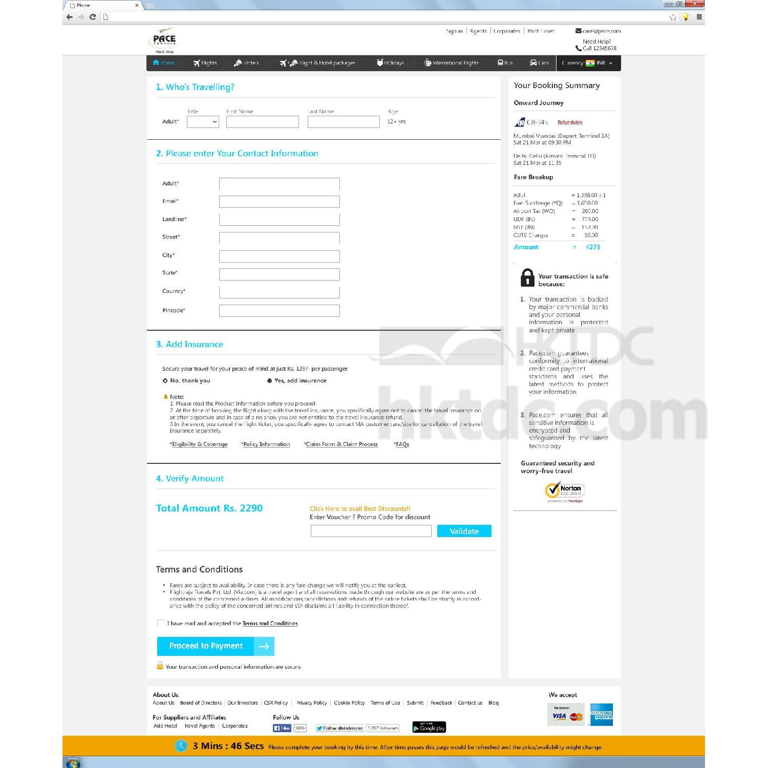 Once user can select the required flight we will redirect him on the next page to take the passenger details. Here we have to show all the details of the selected flight with passenger panel.