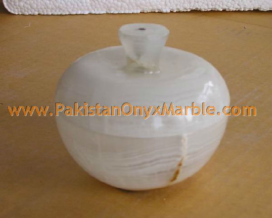 We are manufacture, exporter and wholesaler supplier of onyx jars, onyx candy jars, onyx sugar jars, onyx candy boxes, onyx cookie jars, trinket jars, jinger jars onyx apple jars candy jars colors: multi green onyx candy jars, multi red onyx candy jars, green onyx candy jars, white onyx candy jars, light green onyx candy jars. Nature gifted a unique present to Pakistan, That is onyx and marble stones, which are found in mountains of Pakistan. It is a kind of stone but because of its beautiful colors and shades it is used to make beautiful handicrafts.