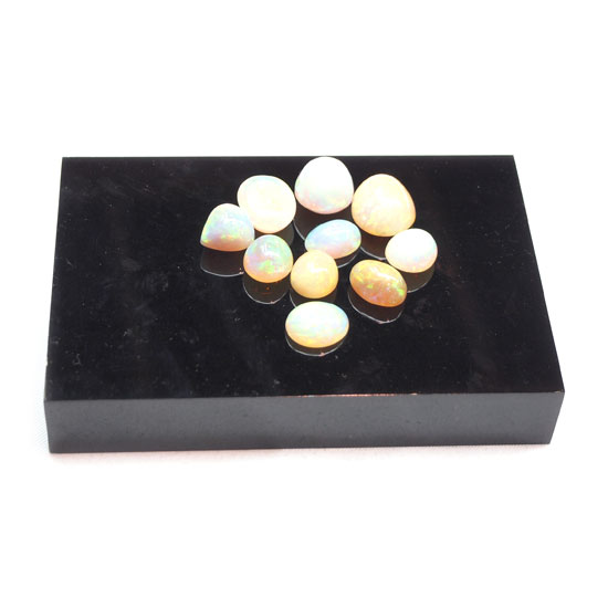 Featured here is a series of opal stones designed in a variety of shapes and sizes. These natural jewels presents characteristic multi-color glow that amazes any onlookers. This precious, unique stone is suitable for use in all kinds of jewelry.