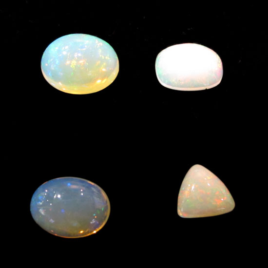 These opals feature different cuts with clean, pleasingly simple contours. Each of them exhibits a blemish-free sleek surface and stunning colored sparkles. These truly beautiful stones simply fit many jewelry applications.