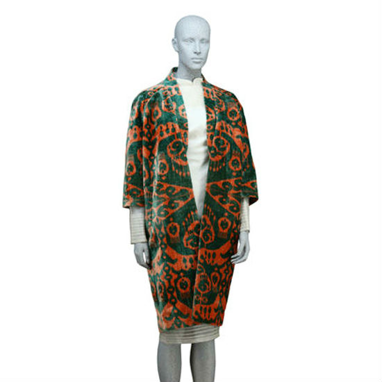 This open front coat is crafted with an open front and elbow length sleeves. The longline silhouette is covered with two-tone ethnic pattern to flaunt a retro style. This open front coat pairs with a longline dress for a perfect lady look.