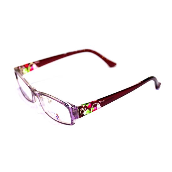 As shown is an optical frame completed with premium Swiss materials. This piece features enchanting pinkish translucent rims and stylish broad temples. Make a pair of modish glasses for yourself with this frame.