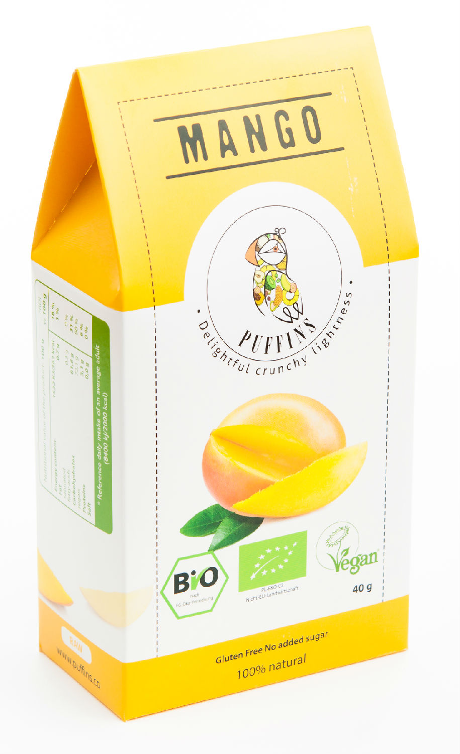 Crunchy organic dried mango snack. Gluten free and vegan.