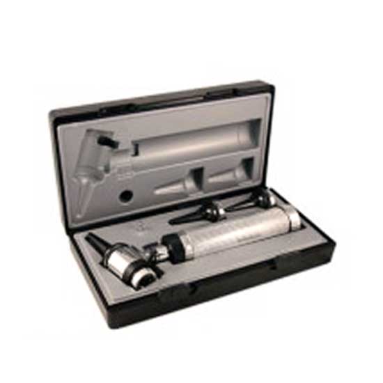 This is an otoscope for ears examination use. It features a pin-contact fitting otoscope head, three sizes reusable specula and swivel magnifying lens. A hard plastic case packing is included for safe storage.