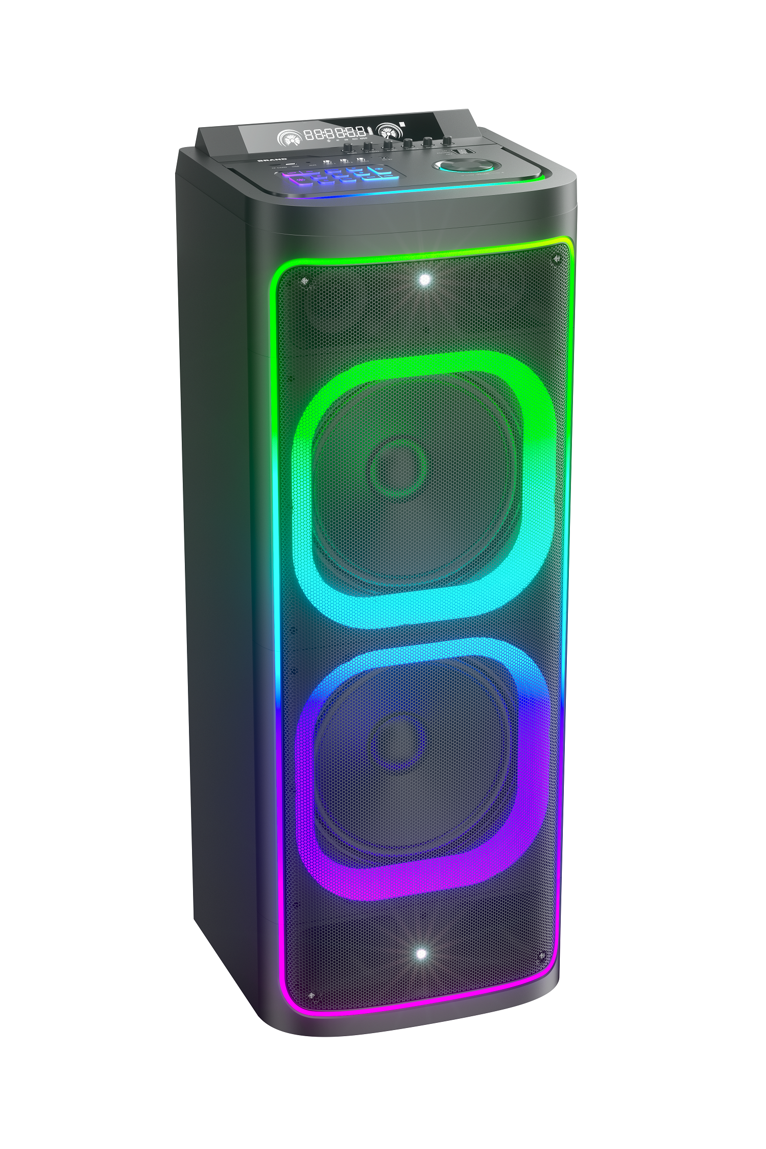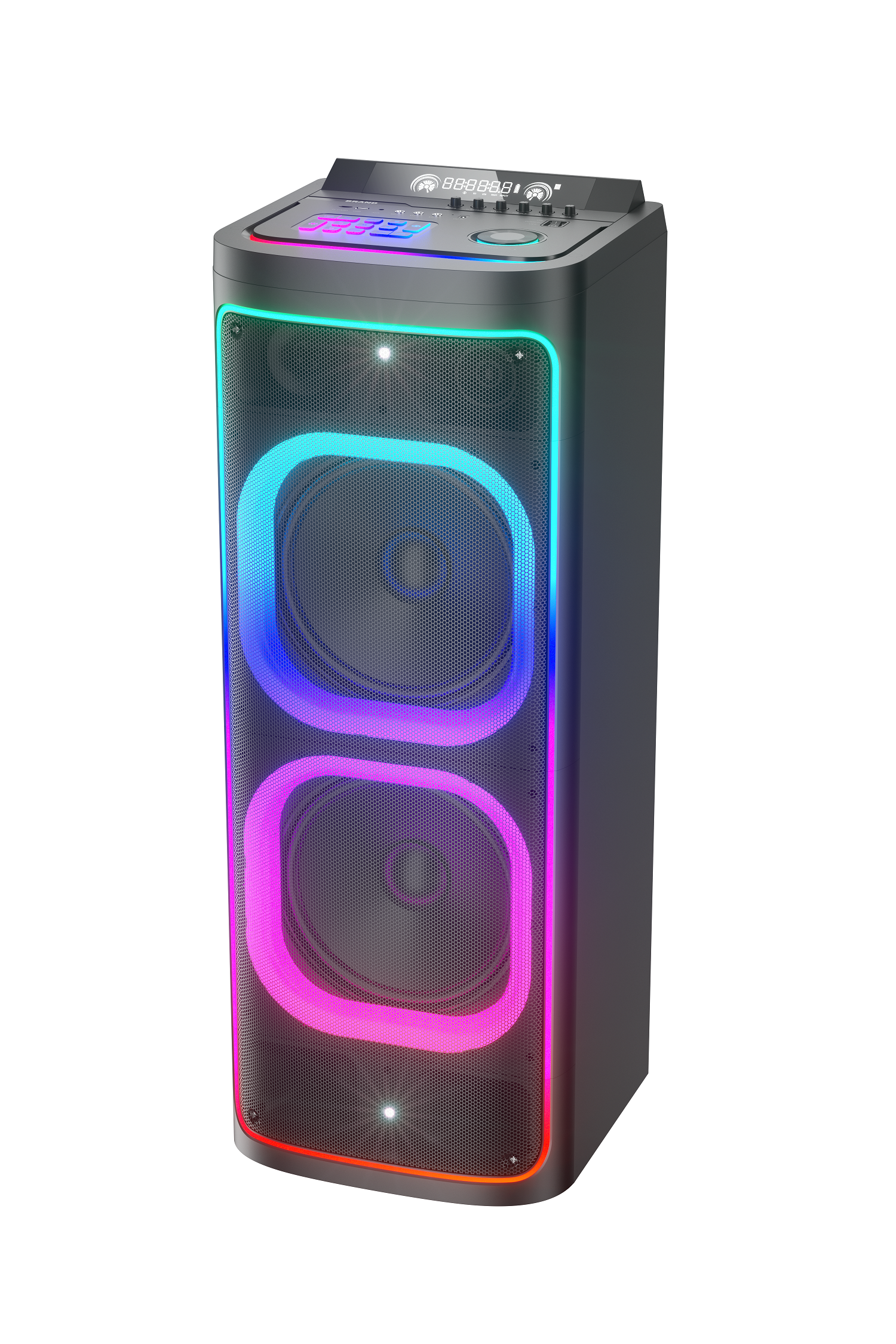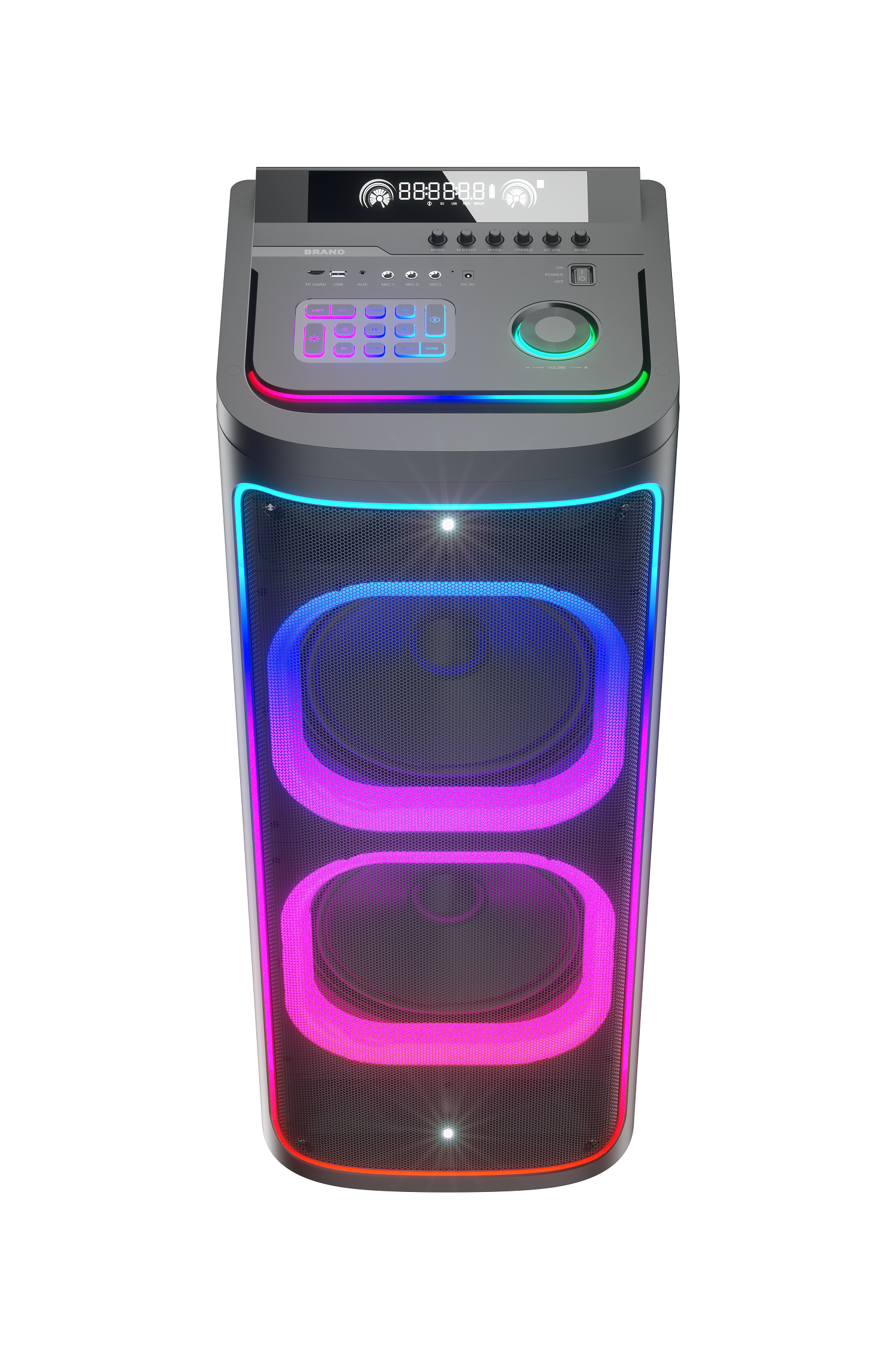 1. Function:BT 5.3+ EDR, AUX, USB, TF card, FM radio, dazzled lights, red LED display, wired or wireless Microphone connetction