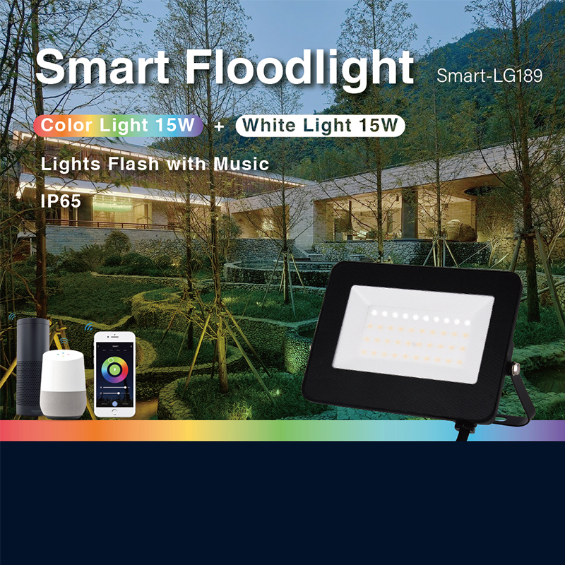 Outdoor Flood Lighting 15W IP65 Waterproof Flood Lamp RGB Wifi Bluetooth Voice COntrol Smart LED Floodlight