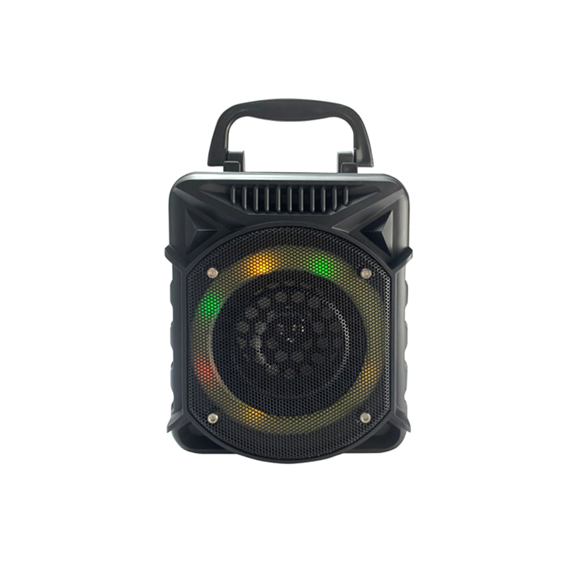 | speaker: 3” Bluetooth version: V5.0 Output power:3W Wireless working range: 10M Frequency Range:150HZ-20KHZ Battery:3.7V/1200MAH (Protection board) Charging time:4H Playing Time:6-8H Support: AUX , USB, FM , BT, TF , Multi-color gradient size:12.5*8.7*17cm Material: PP |