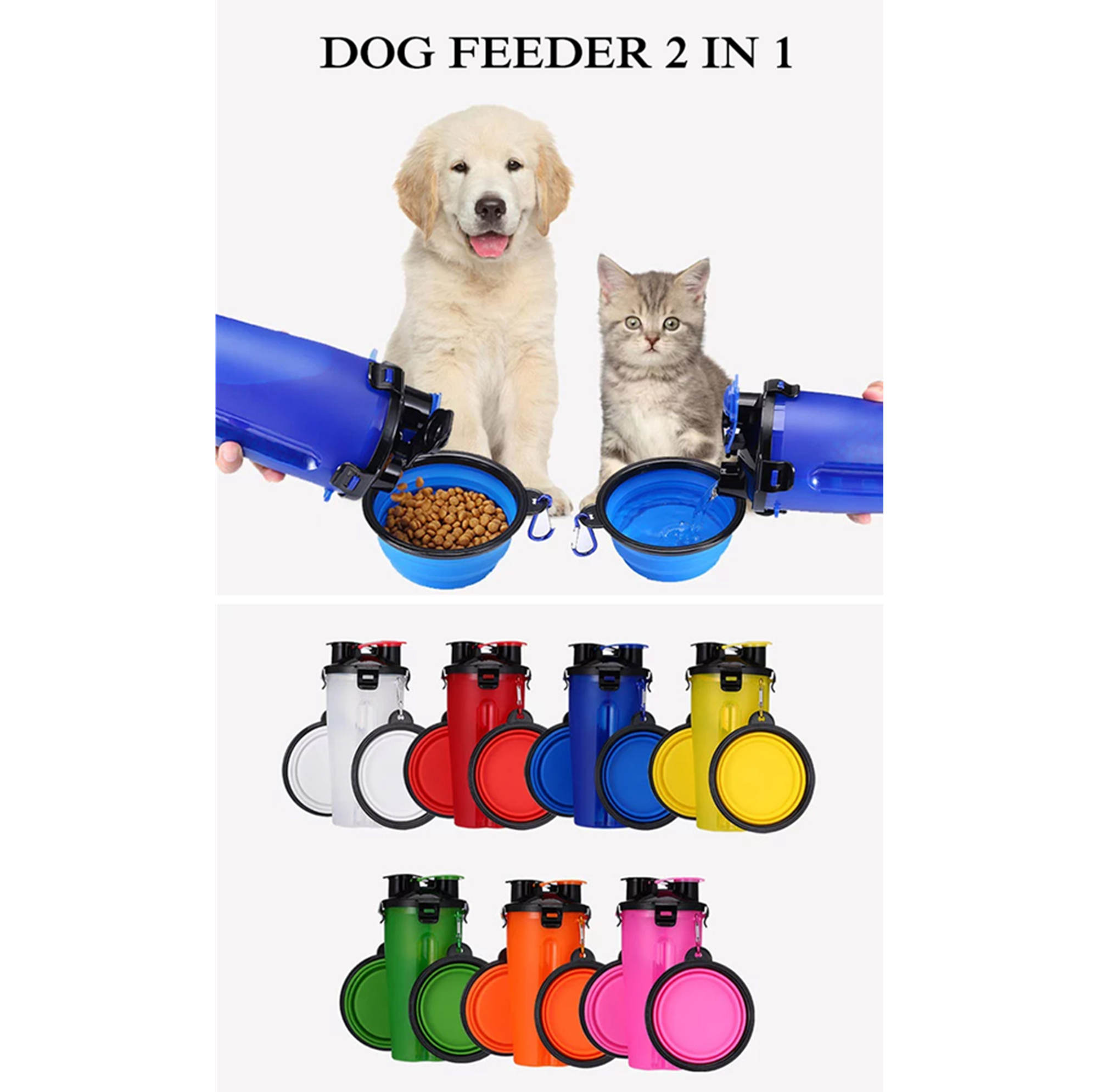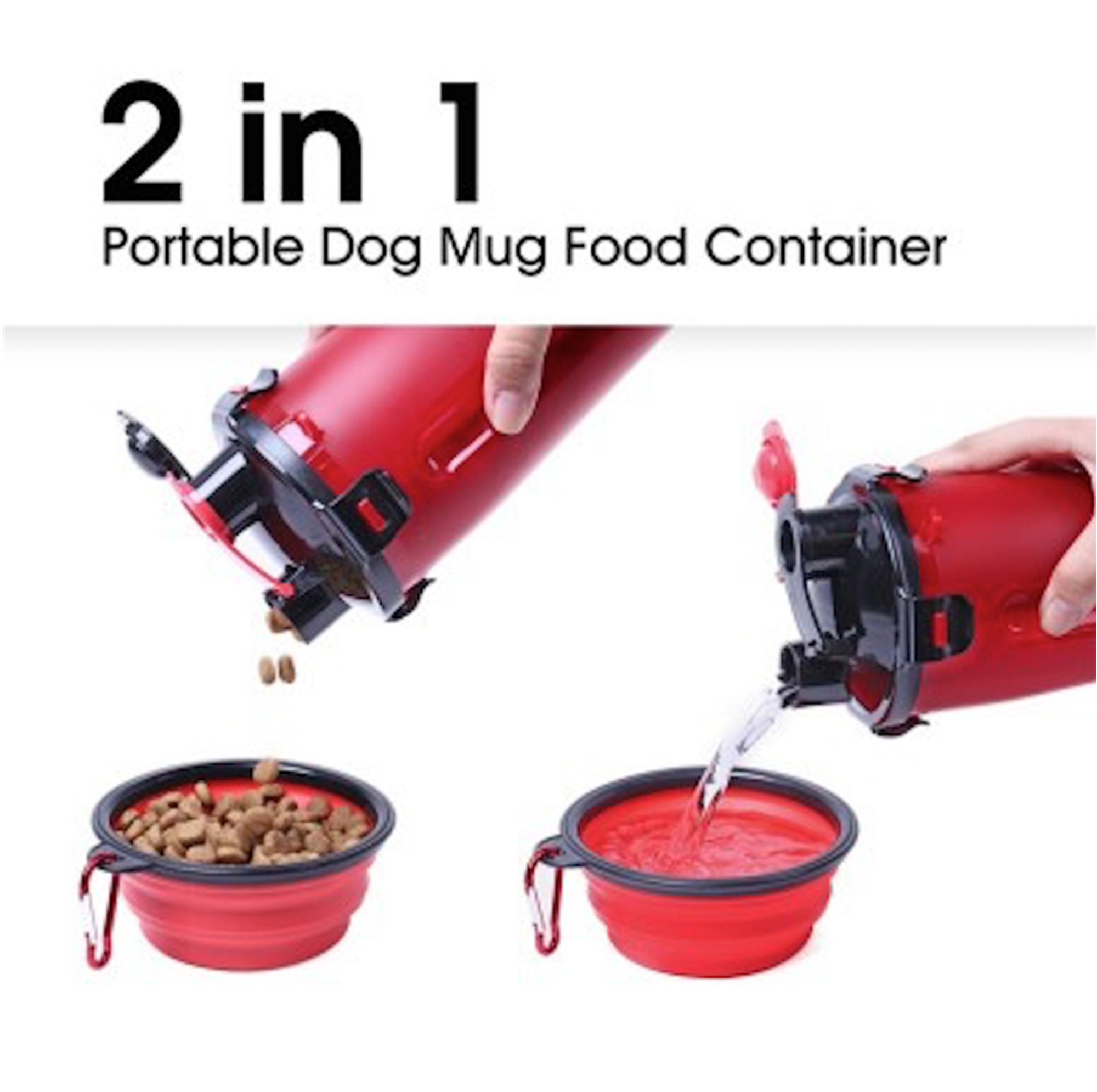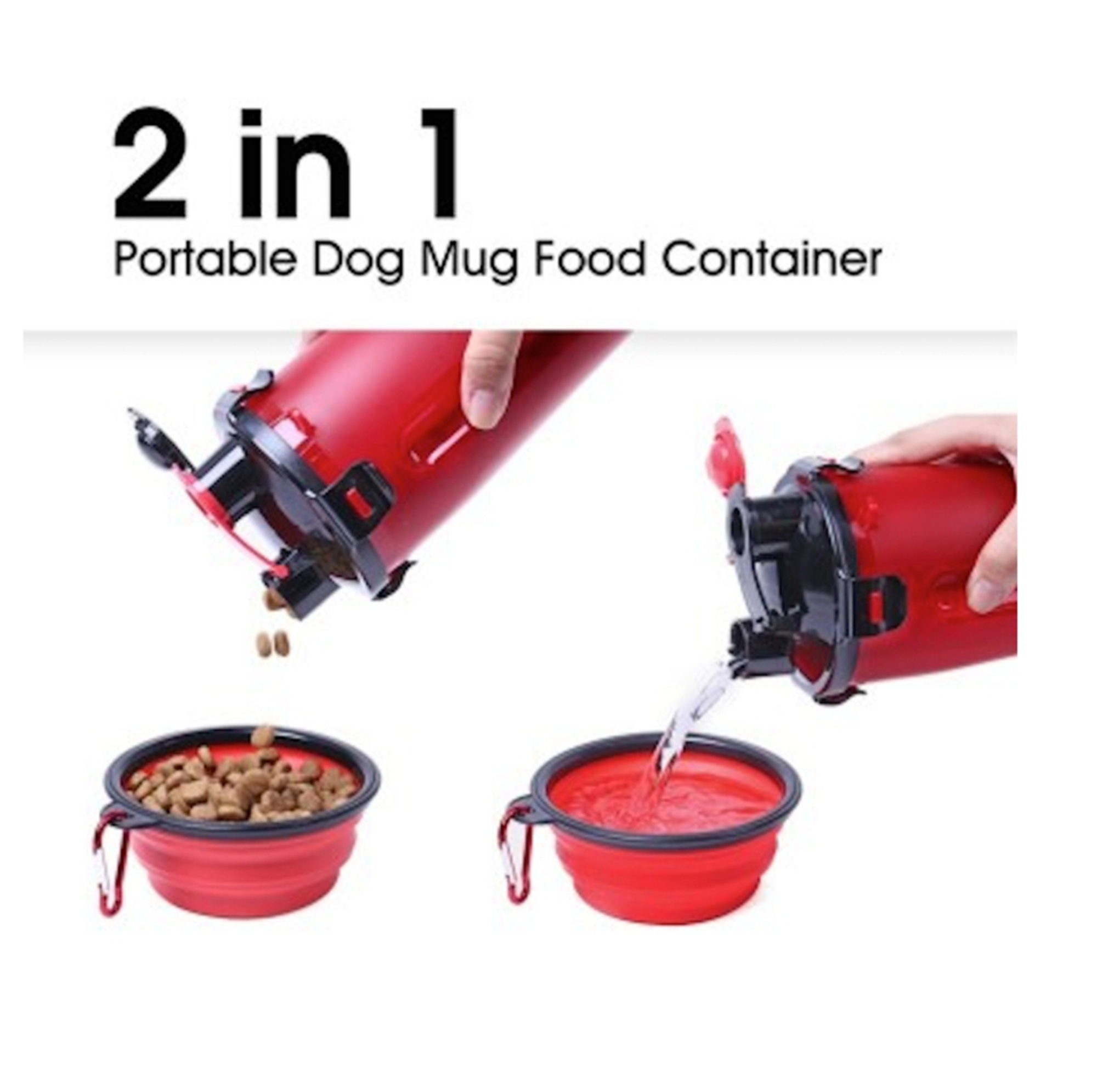 2 in 1 portable dog mug food containerA cup of double-useGo out without worriesFood storage: 250gWater storage: 350MLSize: 11*23*8cm or 4.33*9.05*3.14inch