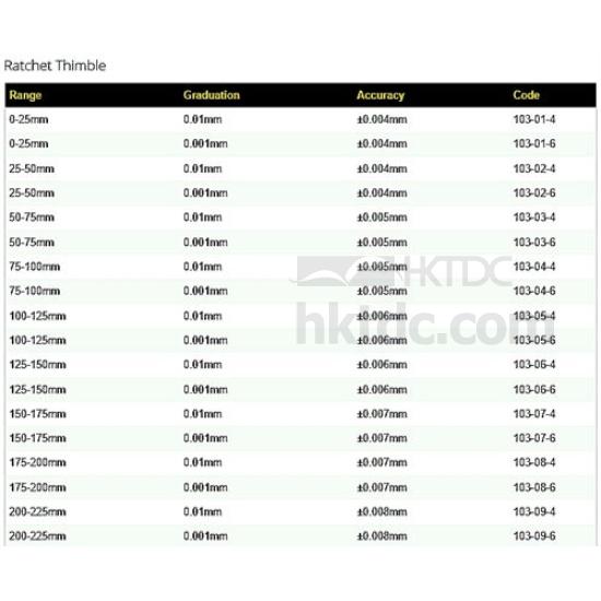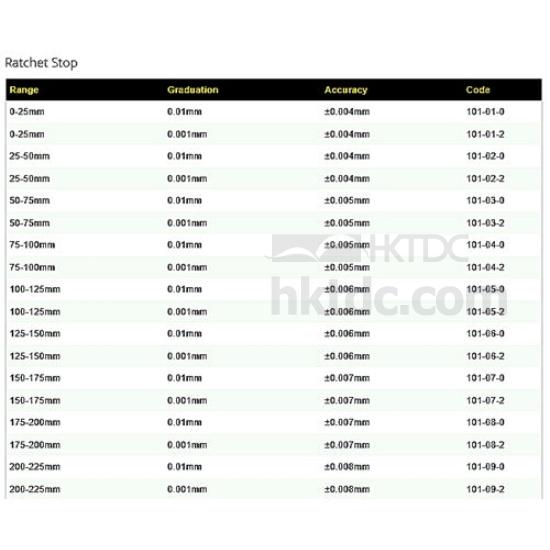 - 0-25mm, resolution 0.01mm.
