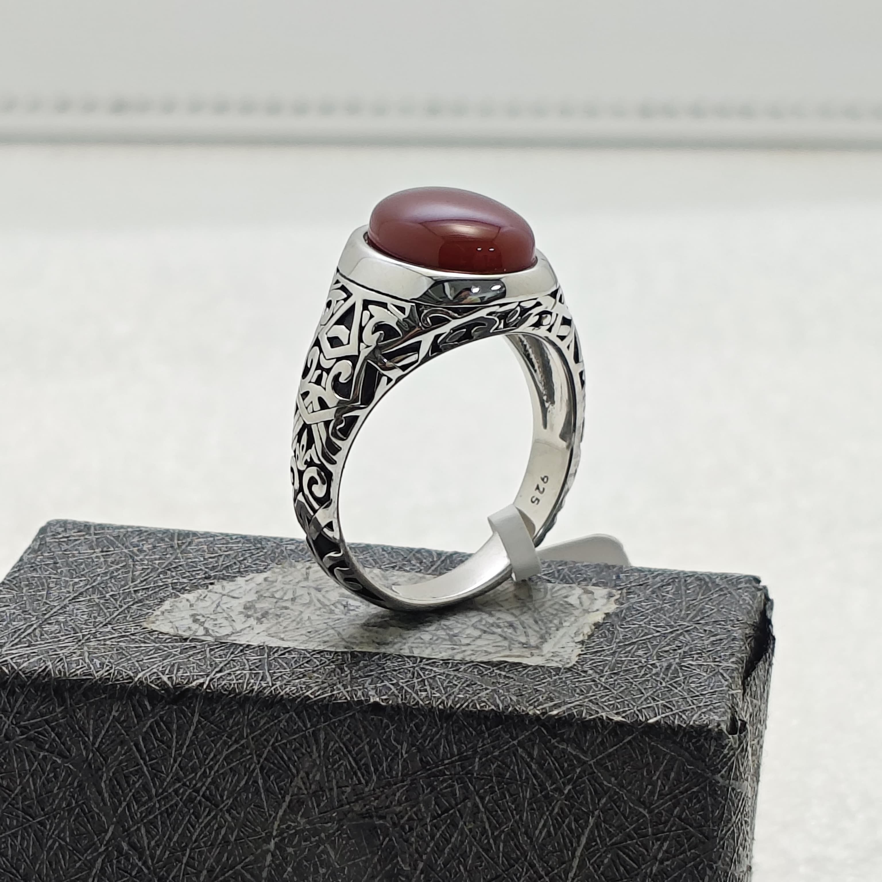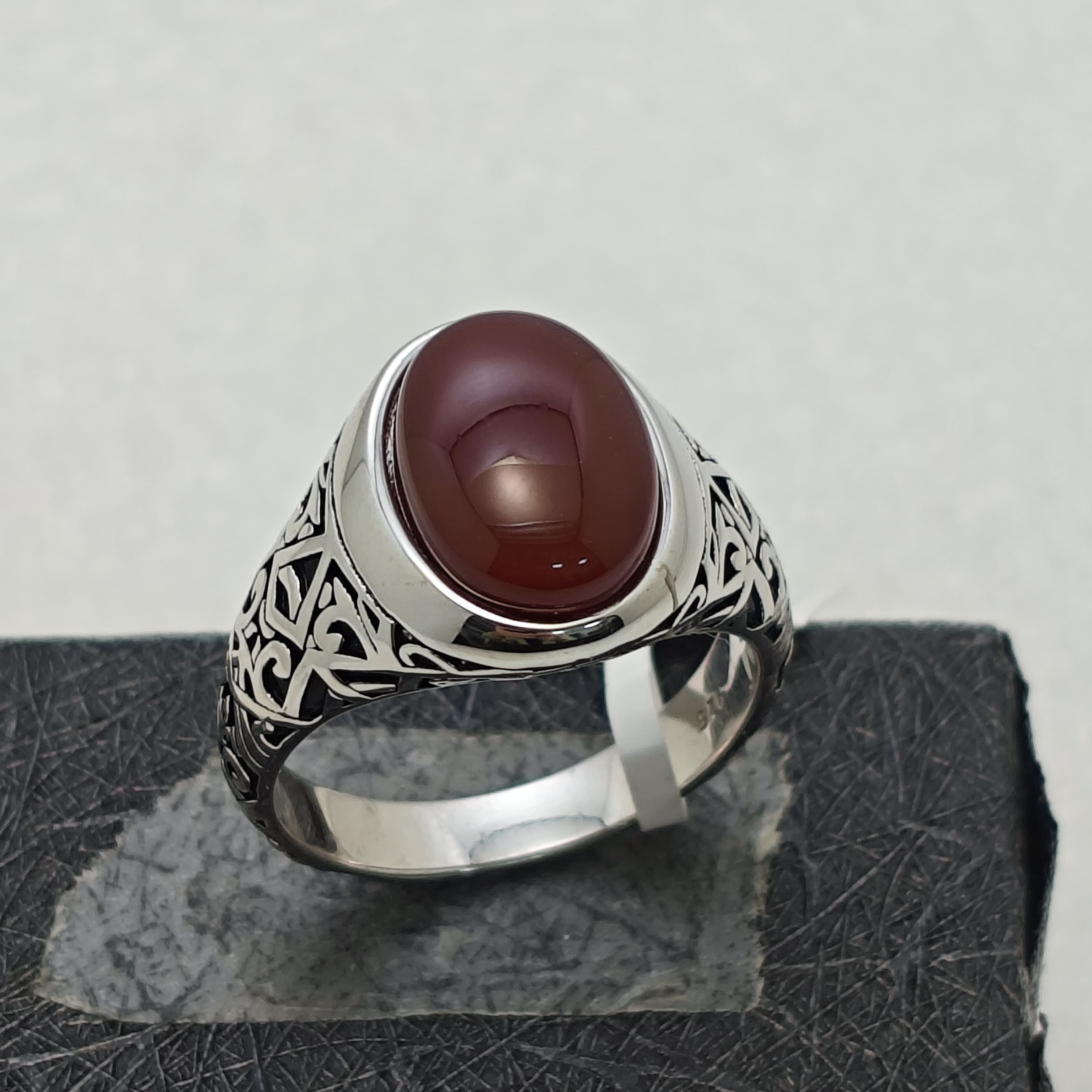 Oval Black Onyx Agate Aqeeq Ring Yemeni Turkish Mens Jewelry 925 Sterling Silver Rings Crystals Healing Feroza Stone for Men