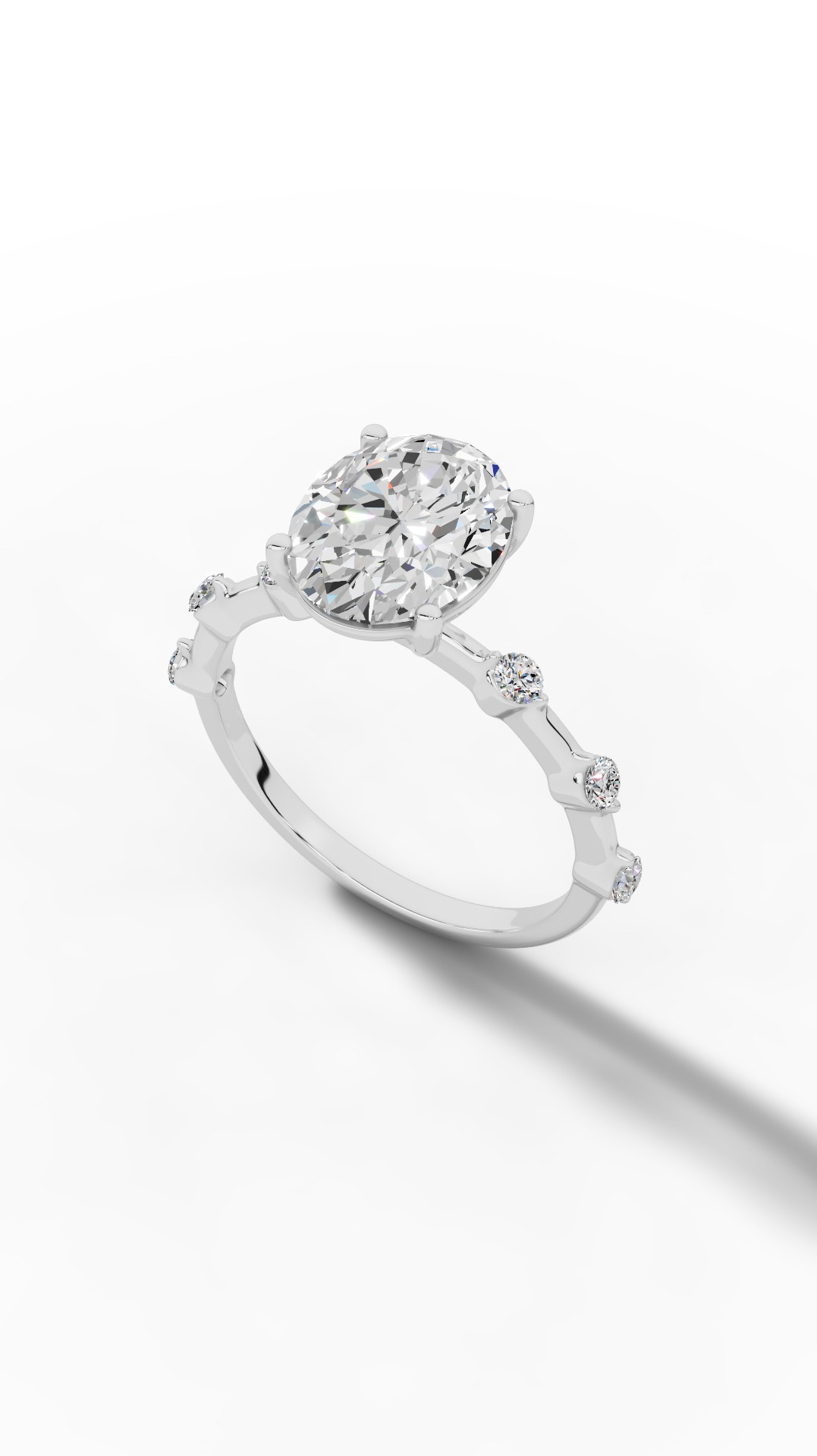 Oval Hidden Halo Ring In Oval & Round Cut Solitaire Lab Grown Diamond