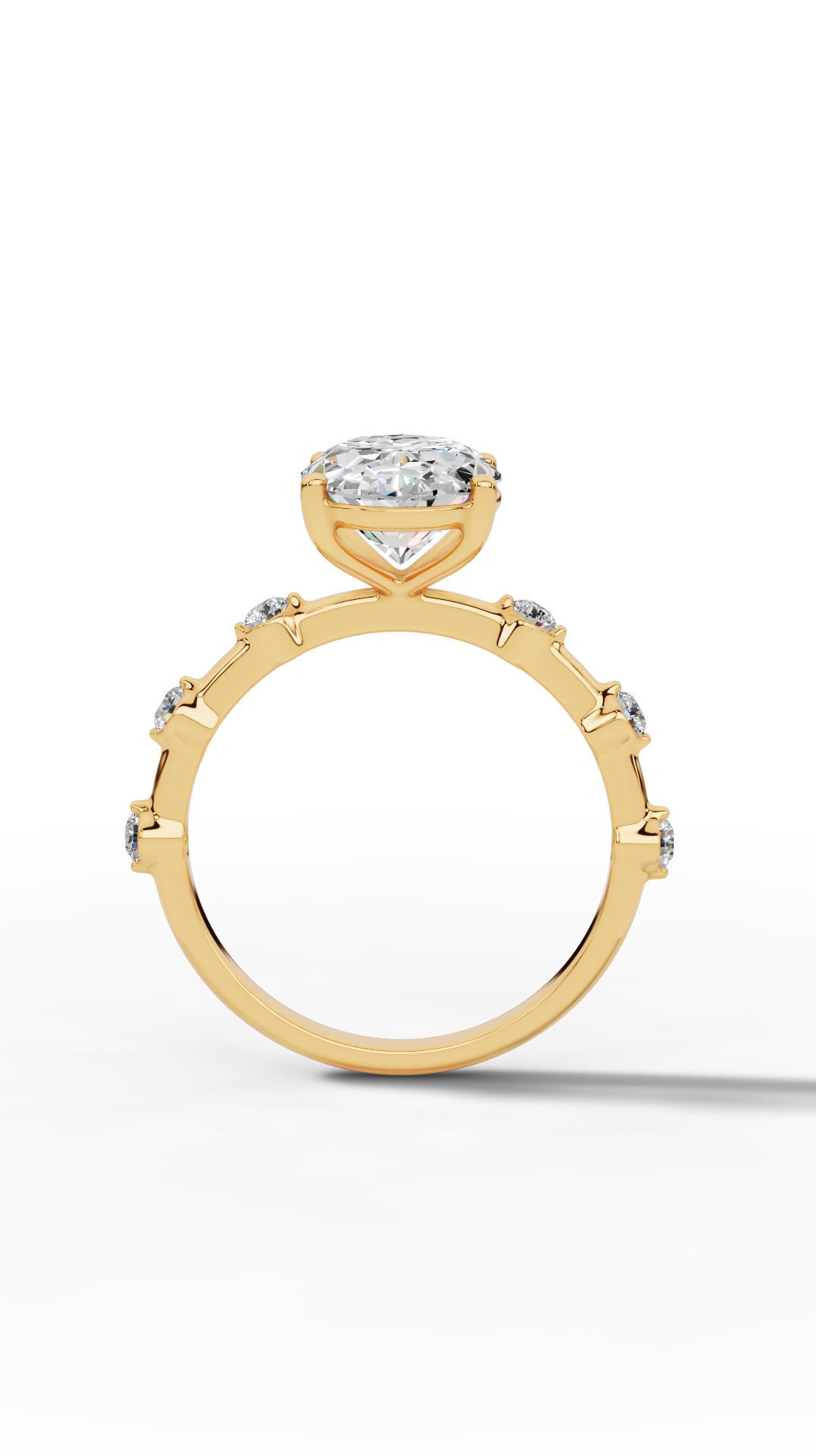 The ring features an elegant oval and round cut solitaire diamond with a dazzling hidden halo, adding subtle brilliance and a sophisticated, graceful silhouette.