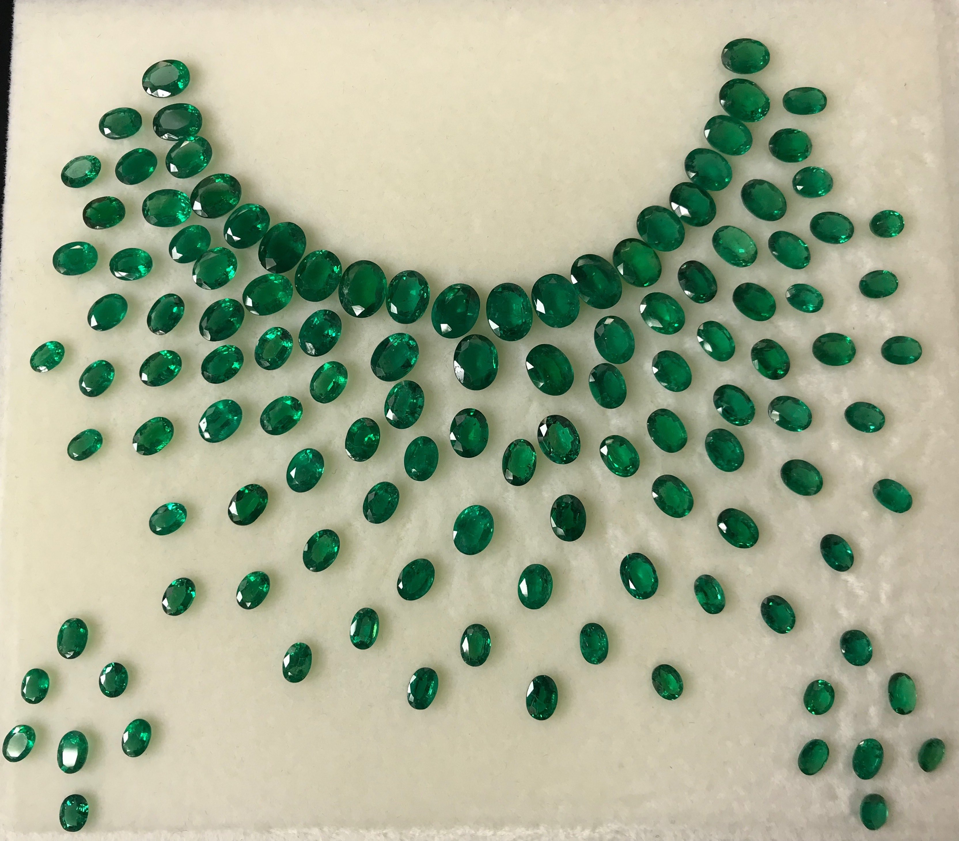 Zambian emerald vivid green oval layout set of 119 pieces.