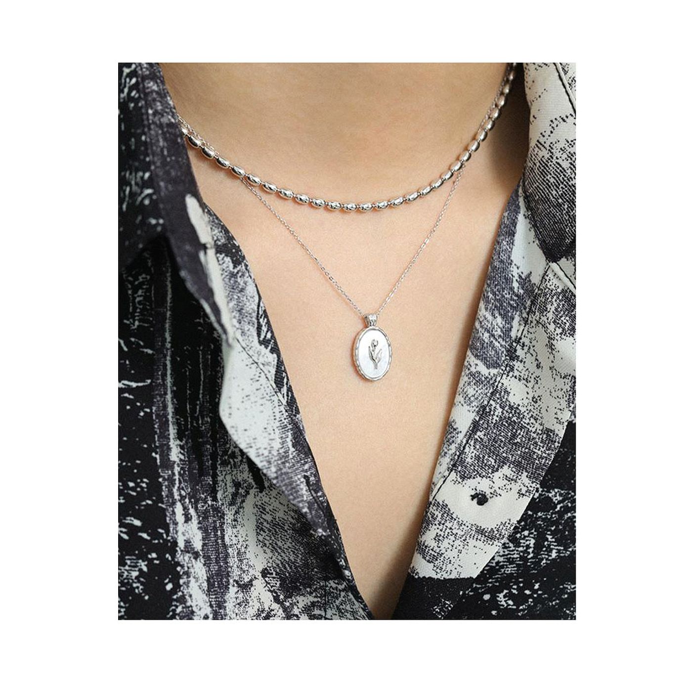 As shown is a high-fashion oval pendant alloy parts jewelry steel necklace.