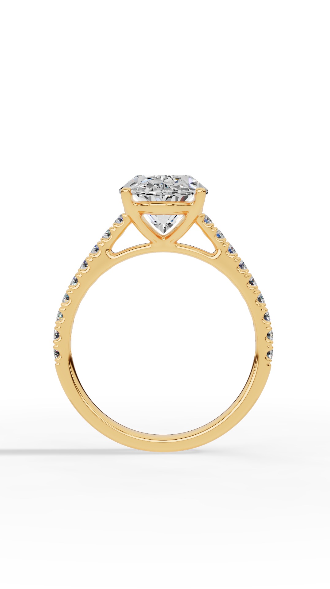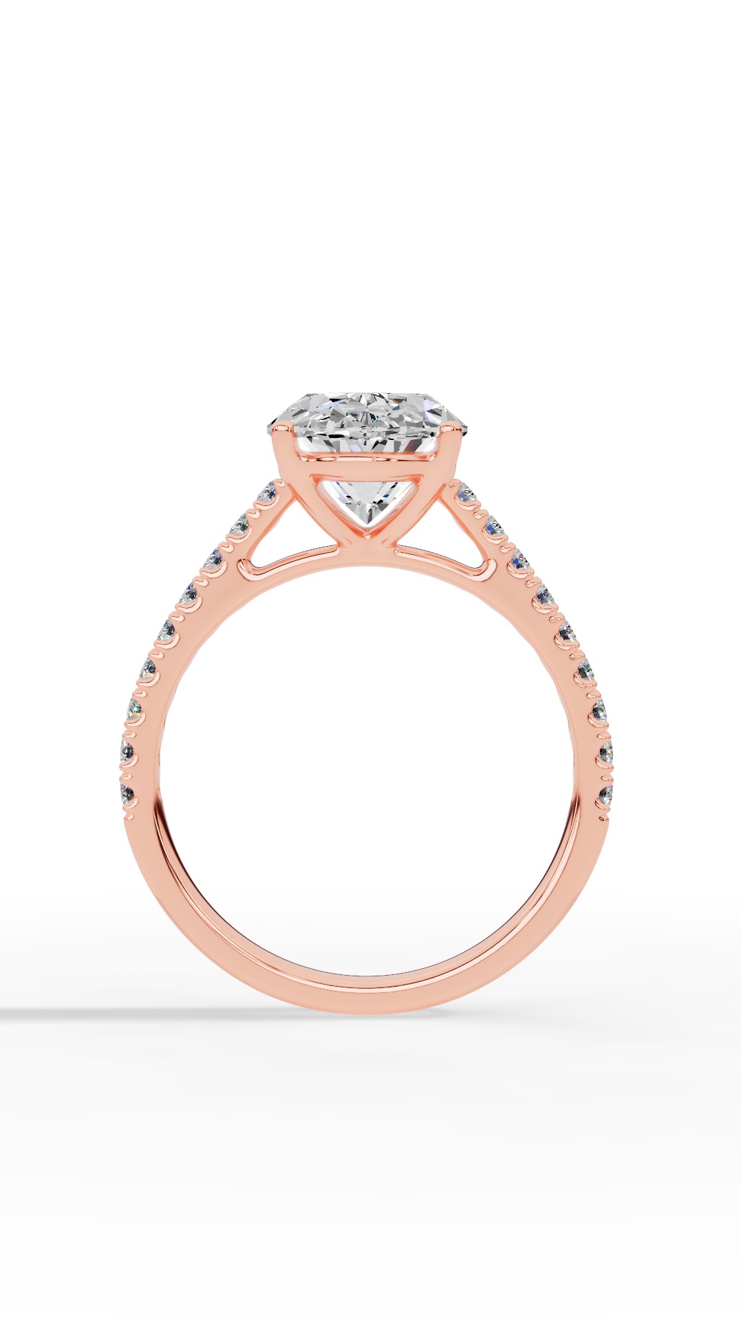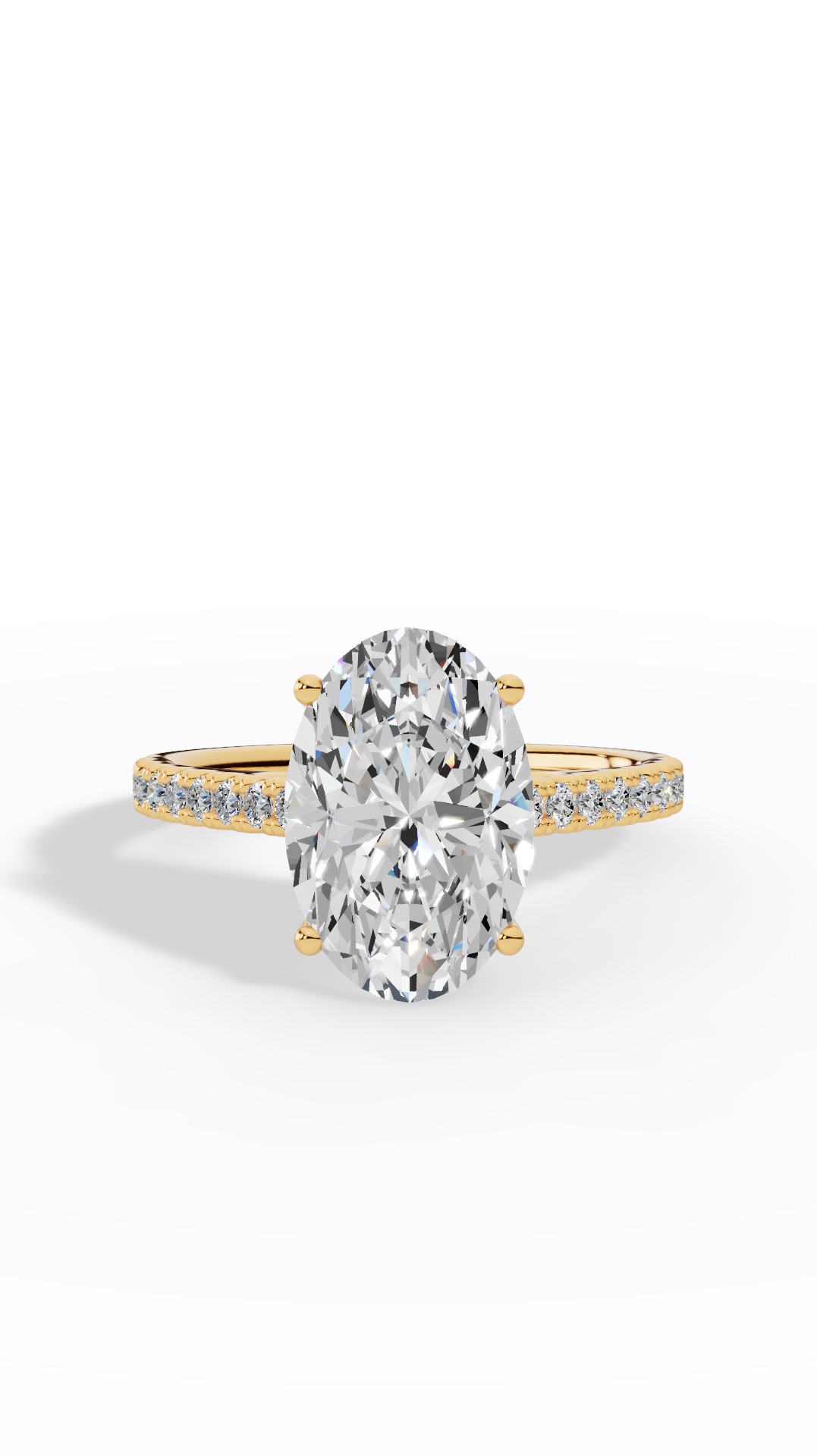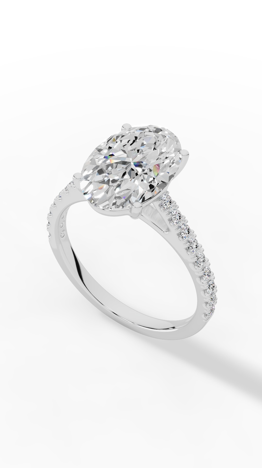The engagement ring features a brilliant lab grown oval and round cut diamond solitaire, radiating timeless elegance with its sleek and graceful design.