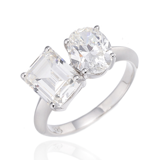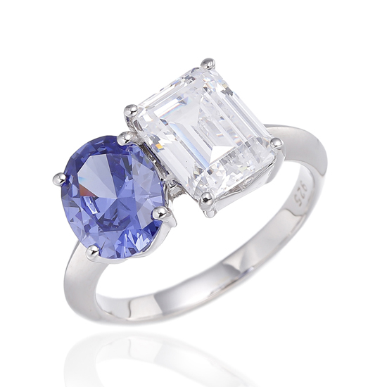 Oval Shape And Emerald Cut Diamond G Cubic Zircon Rhodium Silver Ring