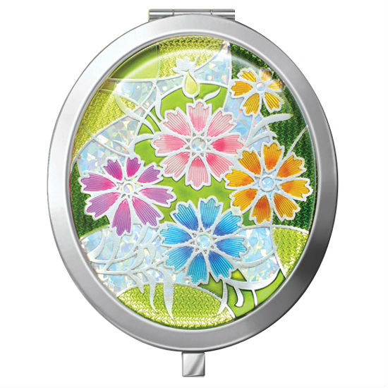 Oval shape. Colored pattern (flowers) with epoxy coating.