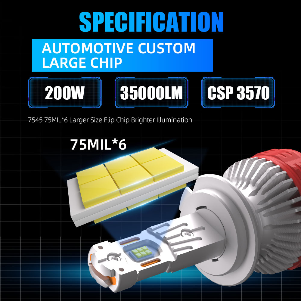 P6Q 200W 35000LM H4 H13 H7 9005 9006 H11 Doul Copper Pipe Luces Led Para Auto Super Bright Led Headlights For Car Mini