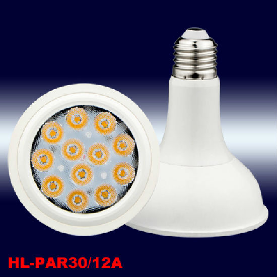 SPECIFICATION: 1) Description: PAR30 12W spotlight. 2) Materials: Aluminum wrapped with thermal plastic housing 3) Light source: Epistar 1W 3030 SMD LED x 12pcs 4) Input voltage: 85~265VAC,50/60Hz,PF:0.9+ 5) Wattage: 12W 6) Output flux: 900~1100Lm, 80Lm/W 7) View angle: 12 or 24deg. 8) Beam color (CCT): 2700K~7000K available 9) CRI(Ra): 80+ 10) Replace: 100W PAR30S halogen spotlight 11) Others: COB LED available FEATURES: 1) Small angle with high flux efficiency, Ra and PF 2) Suitable for damp location 3) Instant on,No noise, No flash, No UV and IR 4) Premature failure rate at 1000Hrs.: less than 2% 5) Switching cycles: 15000+ 6) Lumens maintenance at 6000Hrs.: 85%+ 7) Operating temperature range: -25C ~ 45C 8) Long life up to more than 50,000 hours 9) Two years limited warranty 10) Comply with CE,RoHS standards CAUTION: 1) Can't be used in fully enclosed luminaires 2) Dry location only.