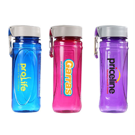 This sports water bottle feature a translucent PC body printed with customized logos. It is equipped with a carabiner on the lid for easy attachment to any sports backpack. The safe water bottle is made of BPA-free material.
