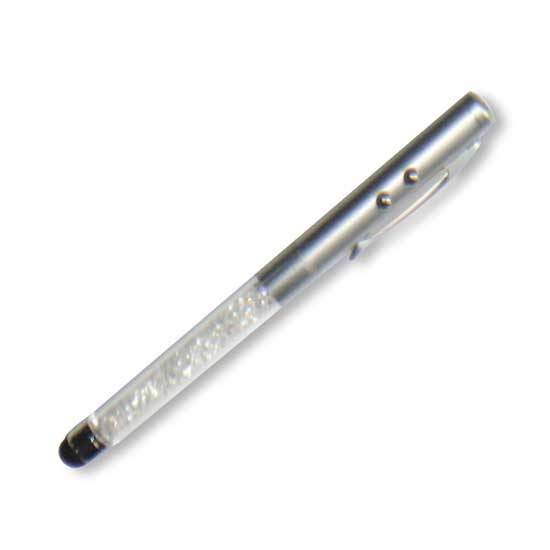 This outlined pen in a silver tone is suitable for use on PDAs. It is made of metal for added endurance. The clip design enables it to be easily carried.