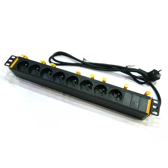 Featured here is an 8-way PDU socket with a cable and a switch. It is constructed of a PC housing with outstanding dimensional stability. The 8-way PDU socket is suitable for use in Europe.