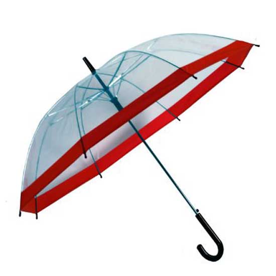 This simplistic umbrella flaunts a transparent design with a thick red border. Paired with a black handle, this umbrella is modern and classy. With a durable 8-rib construction, this umbrella protects you from the rain.