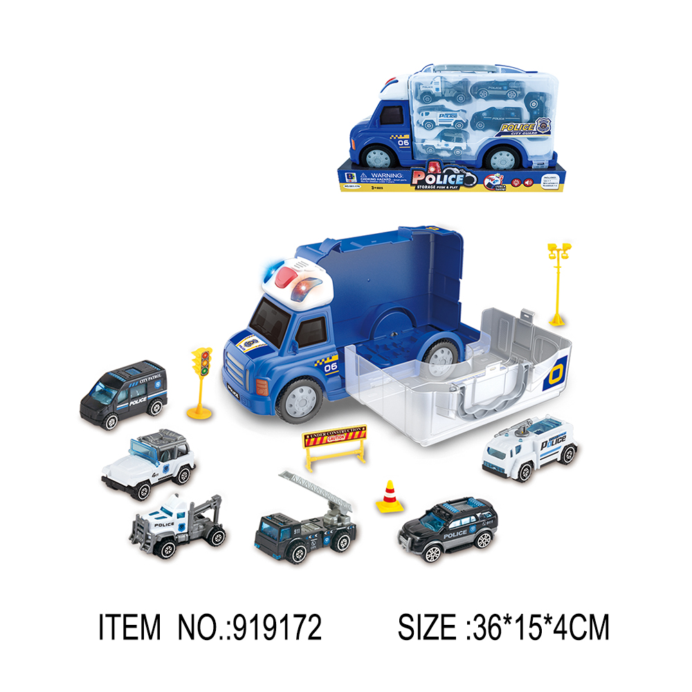 POLICE CAR+6 PCS CARS PLAYSET WITH SOUND& LIGHTS(USE 2 PCS AG13 INCLUDED),TEST REPORTS:EN71 PART1-2-3/PHTHALATE TEST/ROHS