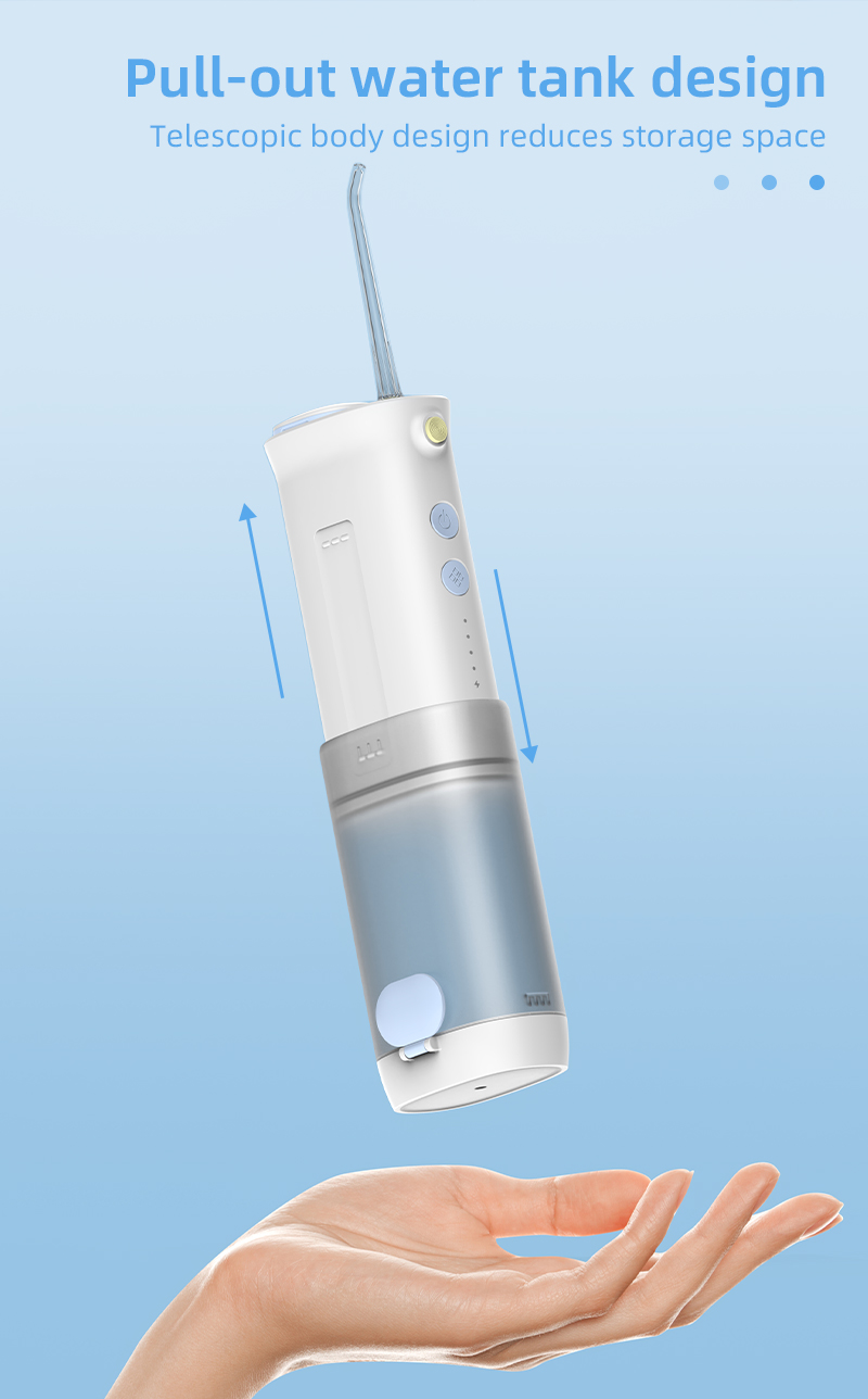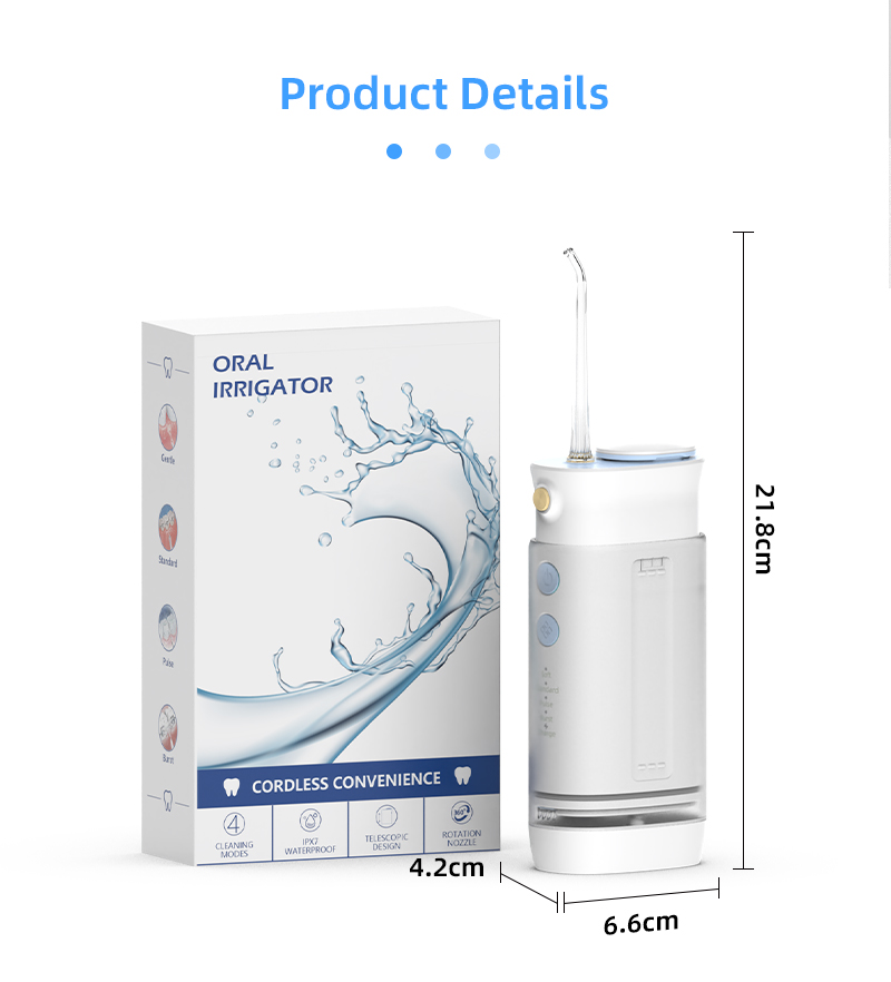 Featuring a pull-out telescopic body design, this oral irrigator combines IPX7 waterproof rating, 4 cleaning modes, and 360° rotating nozzle. It easily fits into pockets and bags, making it perfect for daily cleaning, orthodontic care, and periodontal treatment. It’s an essential oral care tool for home, office, and travel.
