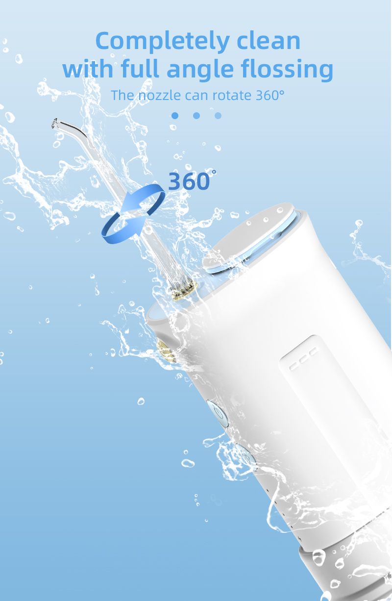 The 360° rotatable nozzle aligns perfectly with interdental gaps, gingival sulcus, and brace gaps for thorough cleaning. The pull-out telescopic body design reduces storage space, making it ultra-convenient to carry during business trips and travel.