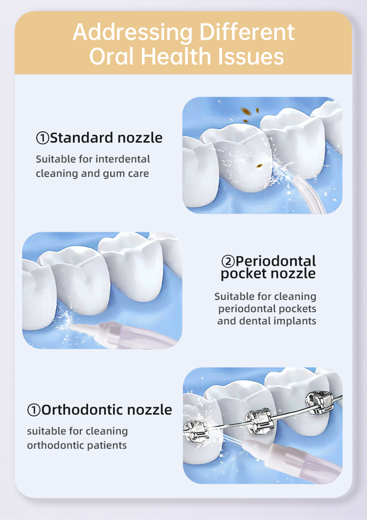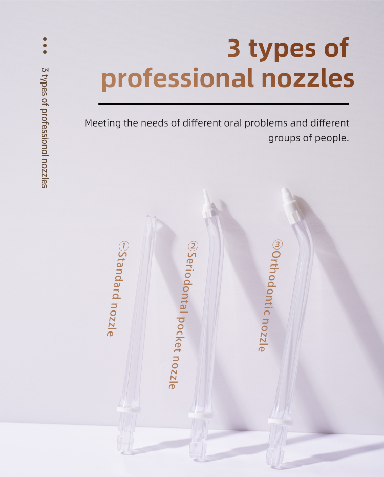 Nozzles: 3 professional nozzles (Standard/Periodontal/Orthodontic)