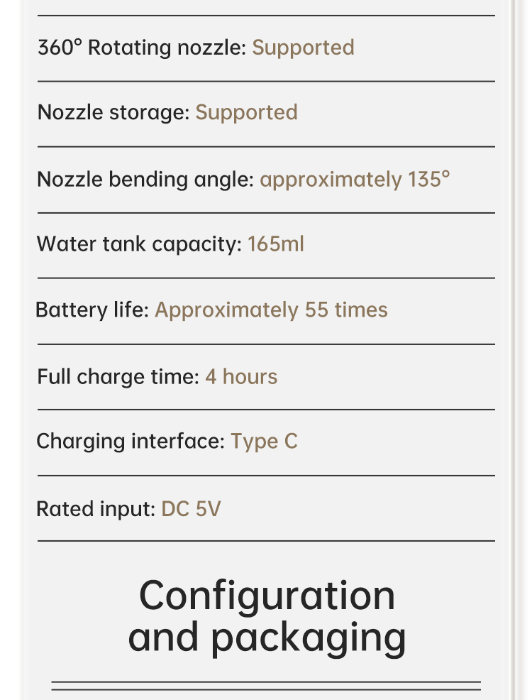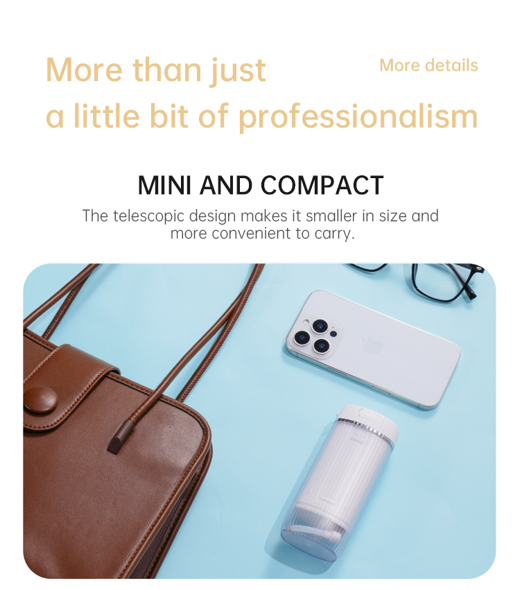 Design Highlights: Telescopic body, detachable water tank, press-to-replace nozzle