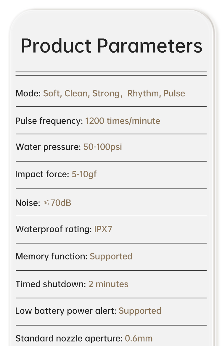 Cleaning Modes: 5 (Soft/Clean/Strong/Rhythm/Pulse)