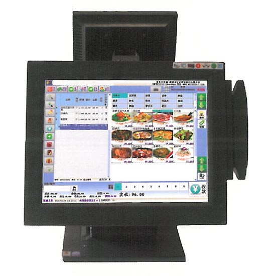 The POS all-in-one system features a generous 15" display panel. It offers well-rendered 1,024 x 768 resolution images. The whole piece stands securely with a flat base.